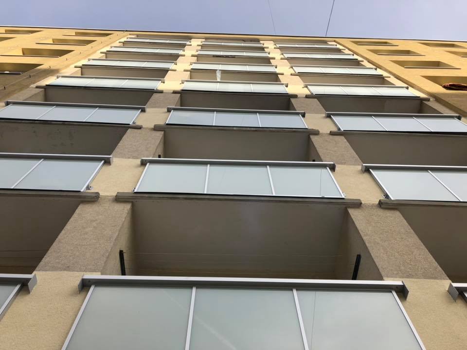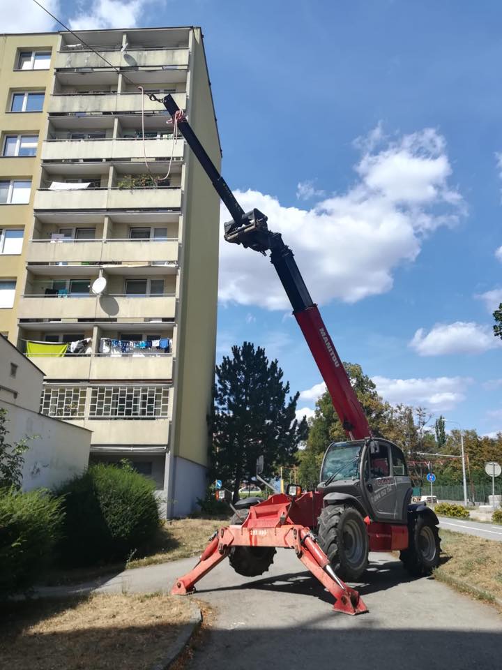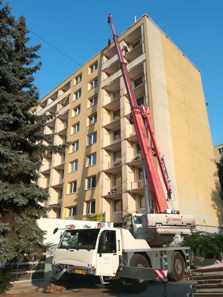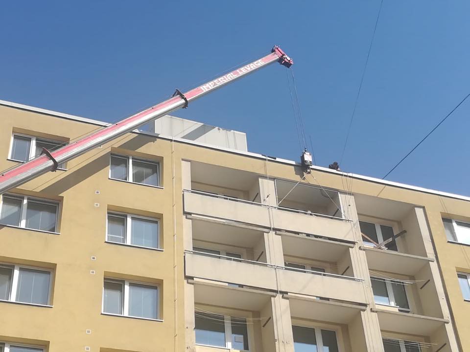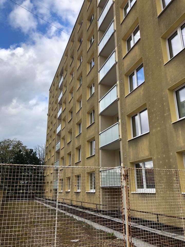 Dokončená realizace v Brně. Nainstalováno 70 ks hliníkových zábradlí vyměněných za původní, betonové panely (cca 600kg/ks), které jsme demontovali a které byly opravdu v kritickém stavu.